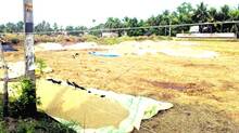 മധുരവേലി പടിഞ്ഞാറെ പ്പുറം പാടശേഖരത്തിലെ വിളവെടുപ്പ് നടത്തി പാറ്റിയെടുത്ത നെല്ല് സിവിൽ സപ്ലൈസ് കോർപ്പറേഷൻ സംഭരിക്കാത്തതിൽ പ്രതിഷേധിച്ച് കോട്ടയം തിരുനക്കരയിലെ പാഡി ഓഫീസിന് മുൻപിൽ നെല്ല് നിരത്തി സമരം ചെയ്യുന്ന കർഷകർ.