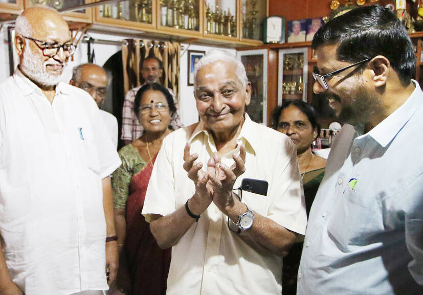 പ്രത്യേക തീവ്ര വോട്ടർ പട്ടിക പുതുക്കലിൻറെ ഭാഗമായി കോട്ടയം ജില്ലയിലെ ഏറ്റവും മുതിർന്ന വോട്ടറായ മീനടം മാളിയേക്കൽ ശോശാമ്മ കുര്യന്റെ വീട്ടിലെത്തി ജില്ലാ കളക്ടർ ചേതൻകുമാർ മീണ എന്യൂമറേഷൻ ഫോം കൈമാറുന്നു