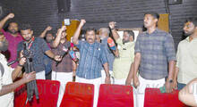 കോട്ടയം അനശ്വര തീയറ്ററിൽ കേരള സ്റ്റോറി സിനിമ പ്രദർശിപ്പിച്ചപ്പോൾ തിയറ്ററിൽക്കയറി ഡി.വൈ.എഫ്.ഐ പ്രവർത്തകർ പ്രദർശനം തടയുന്നു