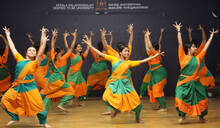 സംസ്ഥാന സ്കൂൾ കലോത്സവത്തിൽ നാടോടി നൃത്തതിൽ പങ്കെടുക്കുന്ന തൃശൂർ എസ് എച്ച് സ്കൂളിലെ വിദ്യാർത്ഥിനികൾ പ്രധാന വേദിക്കരിക്കെ
