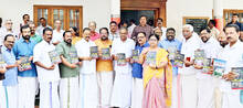 തൃശൂർ സിപിഎം ജില്ലാ കമ്മിറ്റി ഓഫീസ് അങ്കണത്തിൽ തിരഞ്ഞെടുപ്പിൻ്റെ ഭാഗമായി എൽഡിഎഫ് പുറത്തിറക്കിയ മാനിഫെസ്റ്റോയുടെ പ്രകാശനം സിപിഎം സംസ്ഥാന സെക്രട്ടറി എം.വി ഗോവിന്ദൻ മാസ്റ്റർ നിർവഹിക്കുന്നു മന്ത്രിമാരായ കെ. രാജൻ ആർ ബിന്ദു കെ.രാധാകൃഷ്ണൻ എം.എം പി . ബാലചന്ദ്രൻ എം.എൽ എ സി .പി .എം ജില്ലാ സെക്രട്ടറി കെ.വി അബ്ദുൾ ഖാദർ, മുൻ മന്ത്രി വി.എസ് സുനിൽകുമാർ തുടങ്ങിയവർ സമീപം