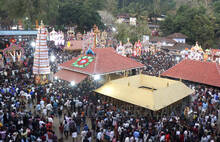 വടക്കാഞ്ചേരി മച്ചാട് മാമാങ്കത്തോടനുബന്ധിച്ച് വിവിധ ദേശങ്ങളുടെ കുതിരകളെ തോളിലേറ്റി തിരുവാണിക്കാവ് ഷേത്രത്തിലേയ്ക്ക് ആവേശത്തോടെ പോകുന്നവർ