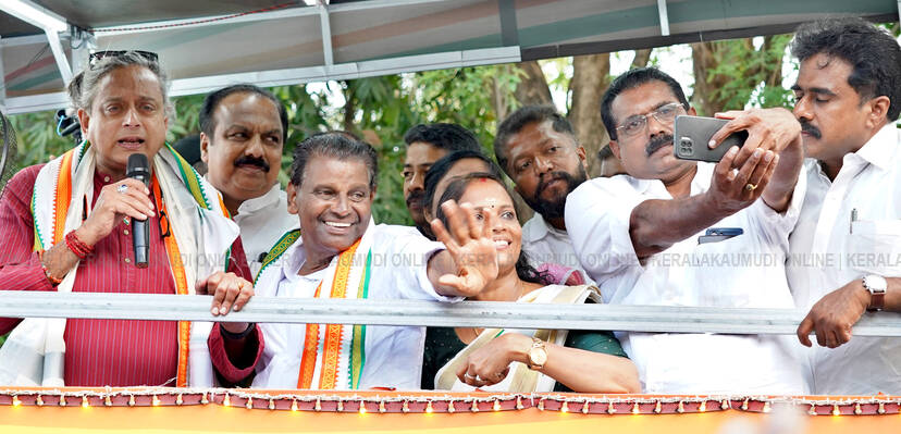 തമിഴ്നാട് നിയമസഭാ തിരഞ്ഞെടുപ്പ് പ്രചാരണത്തോടനുബന്ധിച്ച് കന്യാകുമാരിയിൽ ടി.വി.കെ അദ്ധ്യക്ഷൻ വിജയ് റോഡ് ഷോ നടത്താനെത്തിയപ്പോൾ പ്രവർത്തകർ വാഹനത്തിന്റെ അടുത്ത് ചെന്ന് അഭിവാദ്യം അർപ്പിക്കുന്നു