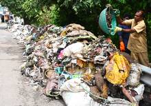 പള്ളിത്തോട്ടം പൊലീസ് സ്റ്റേഷൻ റോഡിന് സമീപത്തെ കൊല്ലം തോടിന്റെ കരയ്ക്ക് നാട്ടുകാർ തള്ളിയ പ്ലാസ്റ്റിക്, അറവ് മാലിന്യങ്ങൾ ഉൾപ്പടെയുള്ളവ കോർപ്പറേഷനിലെ ശുചീകരണ തൊഴിലാളികൾ തോട്ടിൽ നിന്ന് വാരിമാറ്റുന്നു