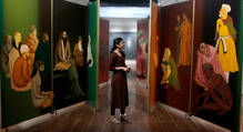 ബിനാലയുടെ ഭാഗമായി ഡർബർ ഹാളിൽ ചിത്രകാരൻ ഗുലാം മുഹമ്മദ് ഷെയ്ഖിന്റെ കലാസൃഷ്ടികൾ വീക്ഷിക്കുന്ന കാഴ്ച്ചകാരി